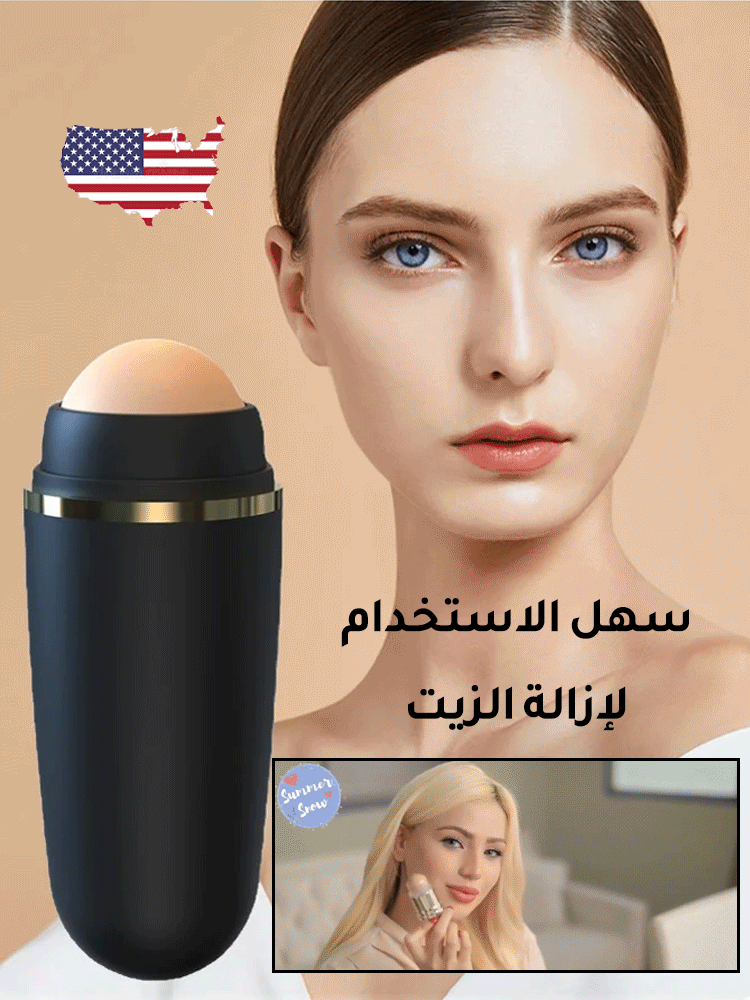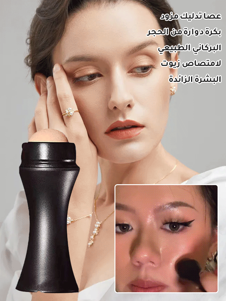 عصا تدليك مزود بكرة دوارة من الحجر البركاني الطبيعي لامتصاص زيوت البشرة الزائدة